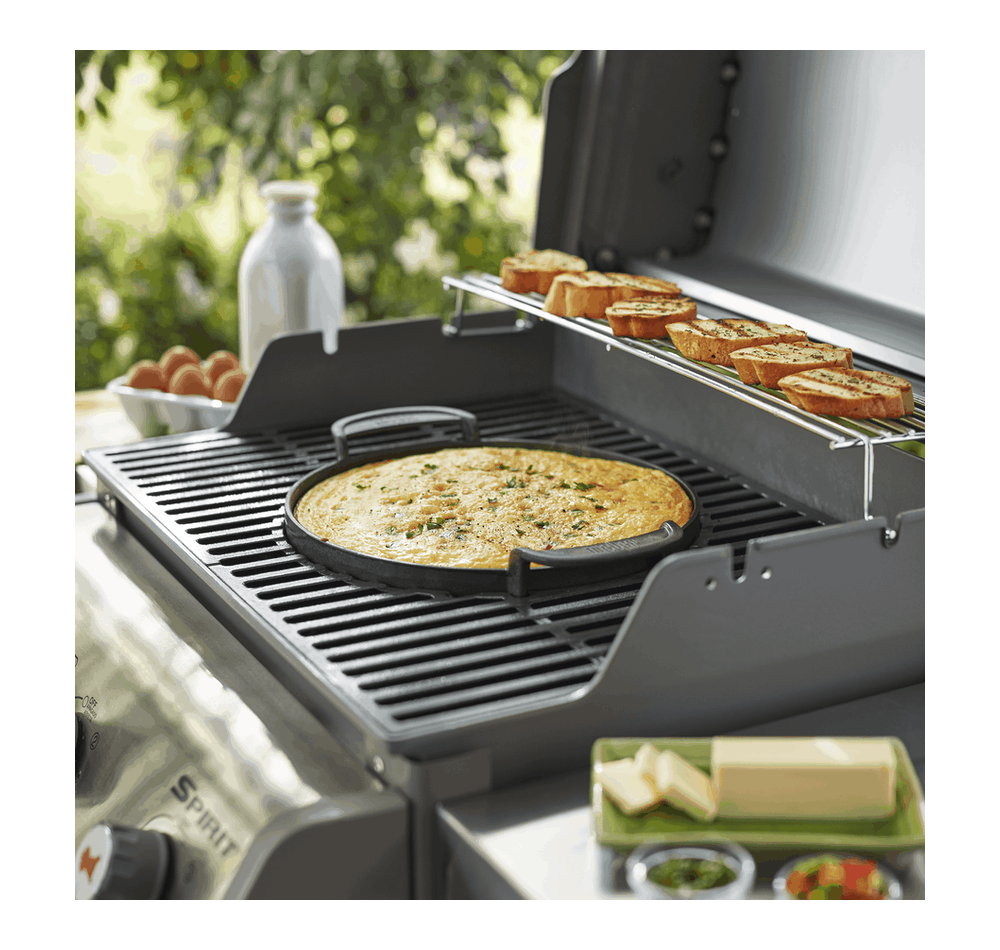 Slip out of bed, fire up your barbecue and prepare a mouthwatering breakfast on the Gourmet BBQ System griddle. The griddle heats up quickly and evenly to guarantee delicious pancakes, eggs your way, grilled tomatoes, mushrooms and sizzling bacon. Hassle free clean up tops it off.